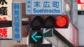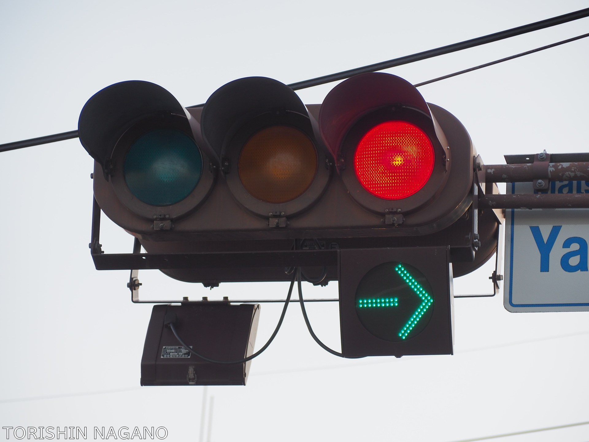 長野県松本市 柳橋交差点には2018年ごろ、電球式の灯器に低コスト矢印灯器を増設する形で矢印灯器が設置されました。