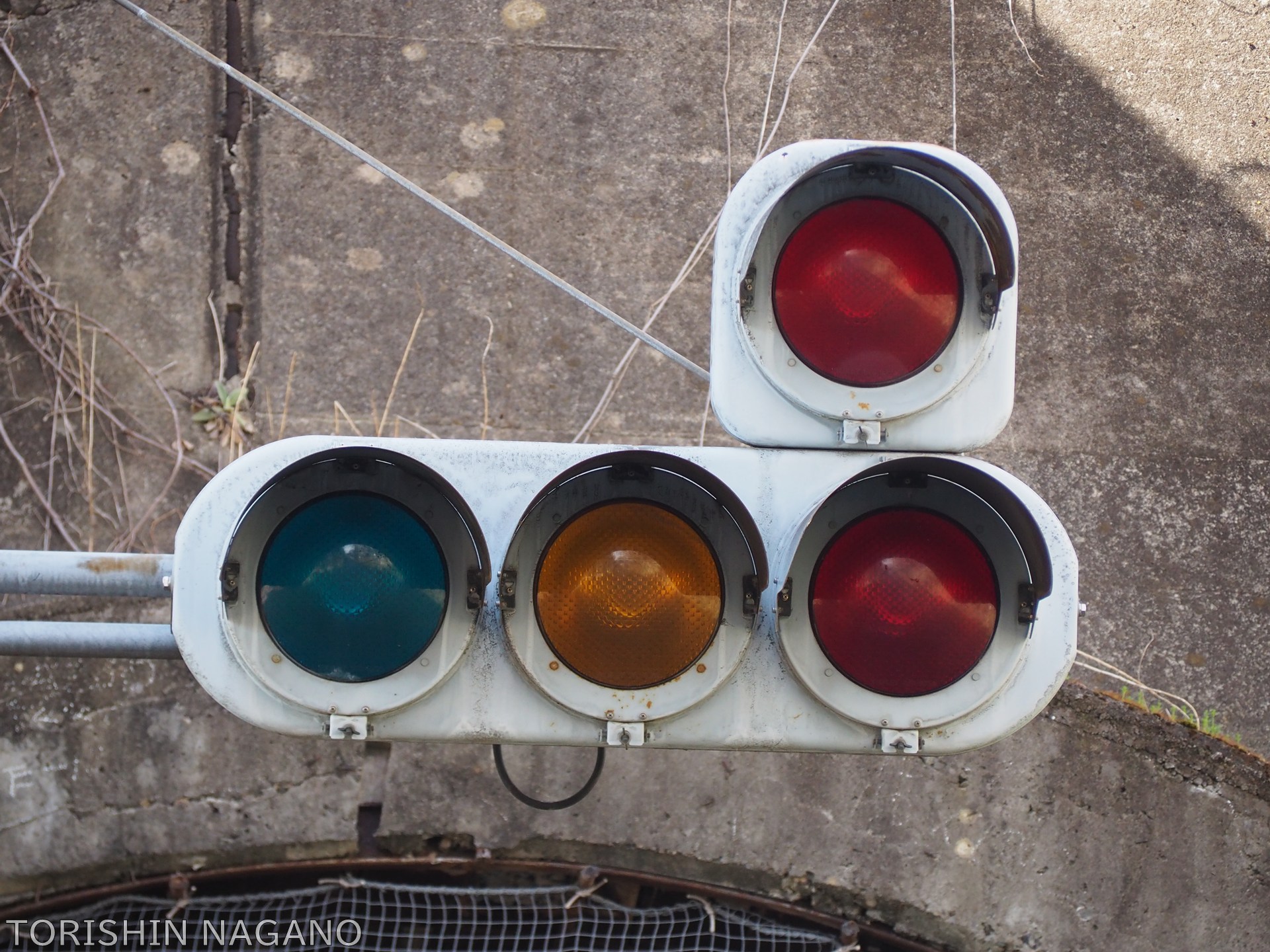 長野県小諸市 市町トンネル出入り口にある「小諸チャレンジ」で有名なおまけ赤灯付きの信号機です。トンネル自体が旧国鉄トンネルを再利用した形になっており、トンネル長寿命化改修工事計画のため、現在は通行止めになっていて、信号機も稼働していません。