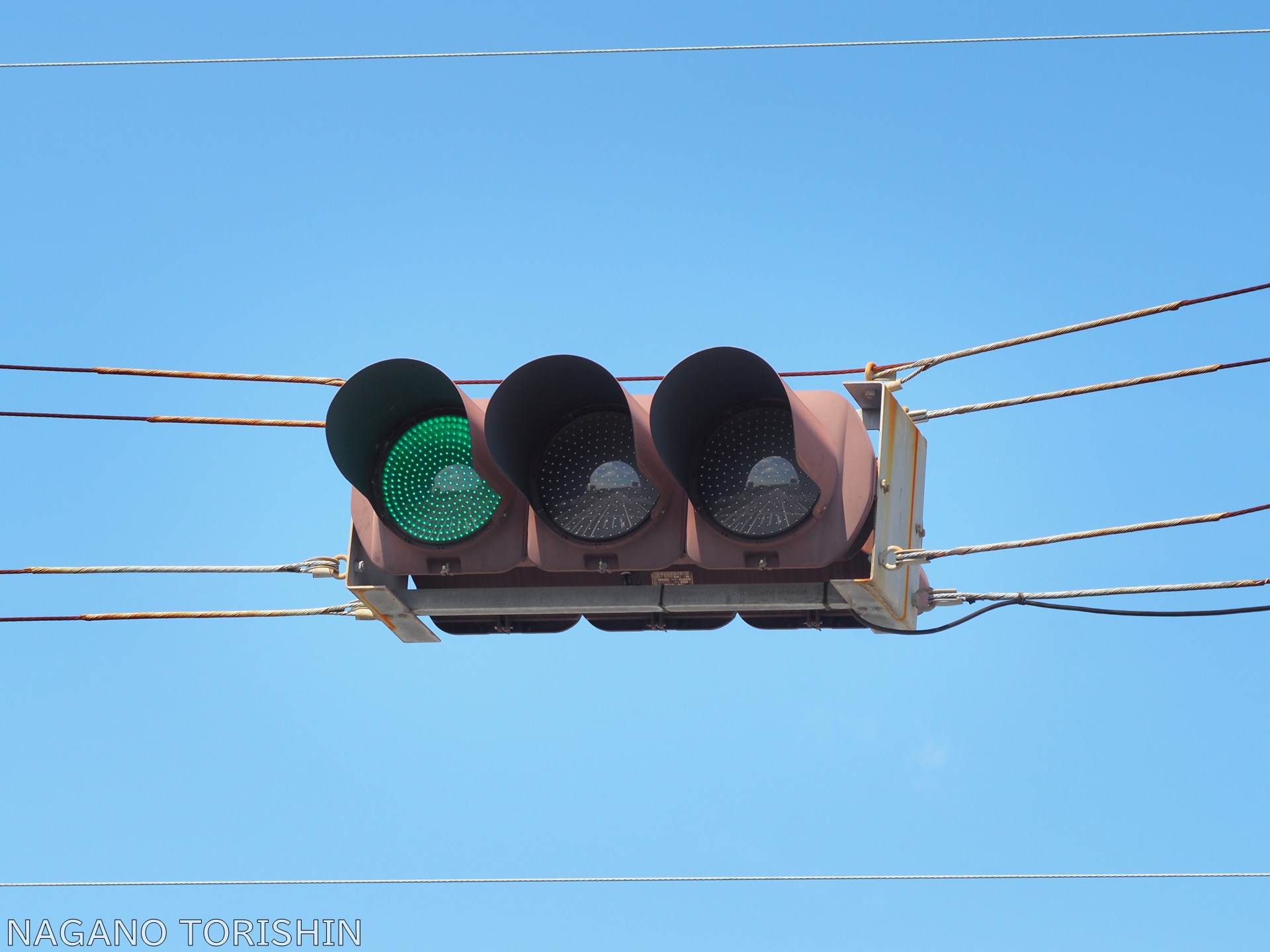 静岡市清水区「巴川橋東」交差点には、ワイヤーで吊るすような感じで設置されている信号機があります。